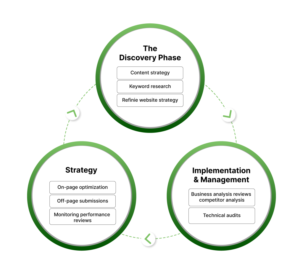At eMod, we document every phase in your plan and deliver through disciplined SEO strategy development and ongoing SEO campaign management. Here’s how our 6-stage SEO methodology drives real results: